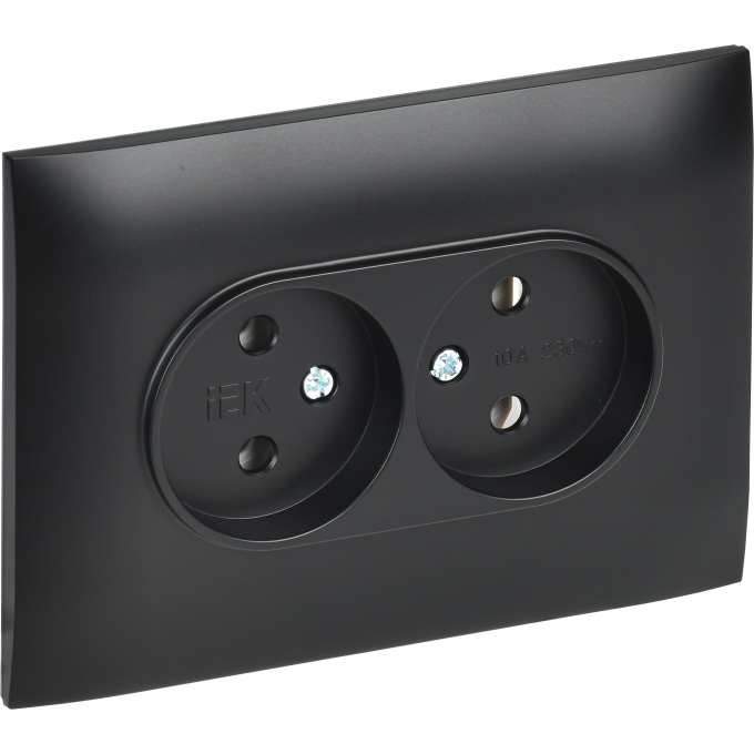 Розетка 2-местная без заземления без защитных шторок 10А в сборе IEK SKANDY SK-R10Bl черный SK-R20-10-K02-F