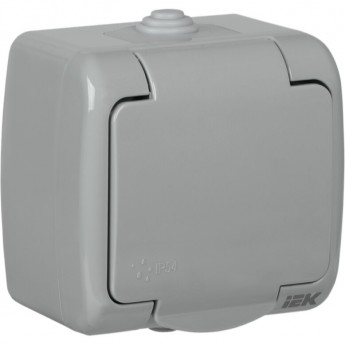 Розетка 1-постовая IEK SKANDY SK-R11G 16А IP44 с заземлением/защитные шторки, с крышкой, графит SK-R16-16-44-K53