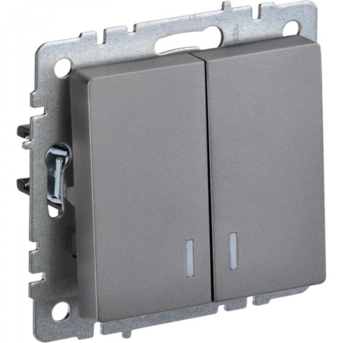 Выключатель 2-клавишный с индикацией IEK BRITE 10А ВС10-2-1-БрС сталь - BR-V20-1-10-K46